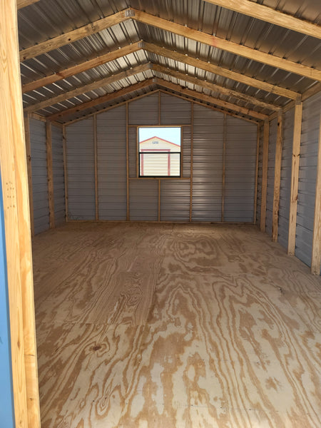 12x16 Double Door Steel Storage Shed with Wide Doors. 7' Studs and back Window for light and air circulation.